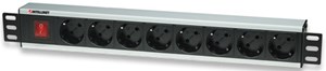 Intellinet 19" 1.5U Rackmount 8-Way Power Strip - German Type EU CEE 7/3 Outlets, With On/Off Switch, No Surge Protection, Built-in 3m Power Cord with EU CEE 7/4 Plug